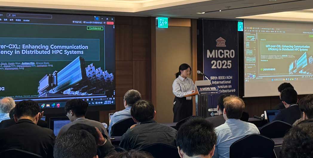 The award recognizes his contribution to the development of Compute Express Link (CXL), a next-generation interconnect technology. Professor Jung and his research team have been working on related technologies since 2015. In 2022, they presented the world’s first full-system framework incorporating a CXL switch at the USENIX Annual Technical Conference. Later, he founded the faculty startup Panmnesia, which developed the world’s first CXL controller IP achieving double-digit nanosecond round-trip latency, as well as a fabric switch supporting the CXL 3.2 and PCIe 6.0 standards.