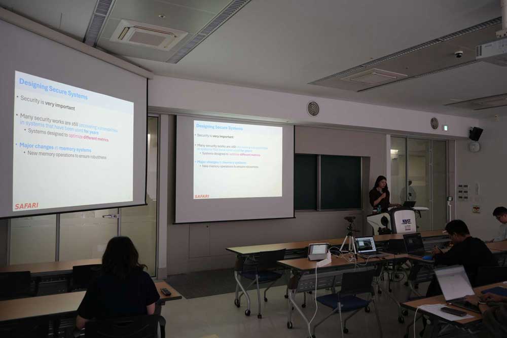 We invited Nisa Bostanci, İsmail Emir Yüksel, Nika Mansouri Ghiasi to a seminar at the CAMEL and had a great time of academic exchange. Nisa Bostanci gave a presentation titled ‘Emerging Covert Channels and Side Channels in RowHammer Defenses and Processing-in-Memory Architectures’. Memory is a central component of modern computing systems, continuously evolving to address robustness challenges . In this talk, she investigate the timing side-channel and covert-channel vulnerabilities in current and future DRAM-based systems that emerge with the adoption of read-disturbance defenses and with the paradigm shift towards memory-centric computing using Processing-In-Memory (PIM) architectures.