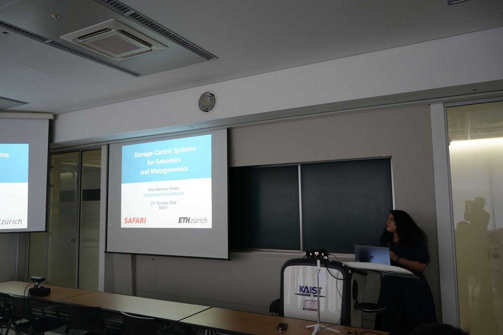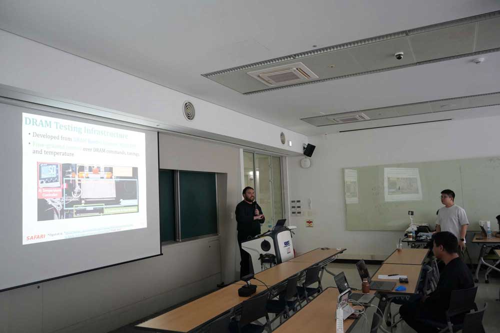 İsmail Emir Yüksel gave a presentation titled ‘Storage-Centric Systems for Genomics and Metagenomics’. In this talk, he experimentally demonstrate and analyze 1) the computational capabilities of real DRAM chips and 2) the robustness issues caused by in-DRAM operations, using over 300 real DDR4 DRAM chips. Our extensive characterization shows that commodity DRAM chips, without any modification to the chip itself, are able to execute bulk-bitwise computation and data movement operations in a reasonably robust manner.